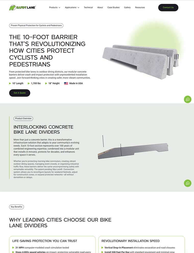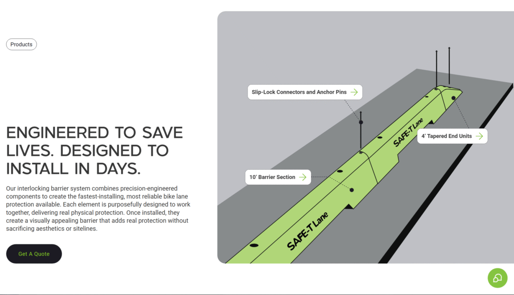 We built a modern, conversion-driven website for SAFE-T Lane, a leader in cyclist and pedestrian protection solutions. The new site showcases their innovative line of bike lane barriers and safety products, designed to make streets safer and cities smarter. With a streamlined, high-impact design built for qualified lead generation, the site positions SAFE-T Lane as the trusted partner for urban planners, contractors, and municipalities committed to safer, more connected communities.