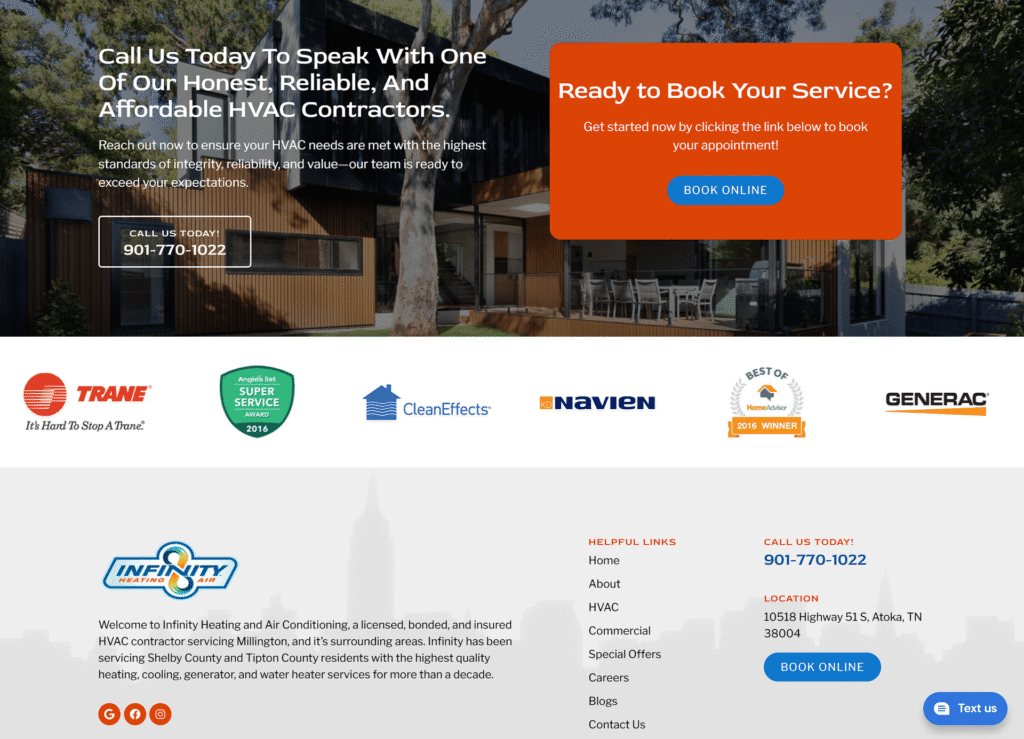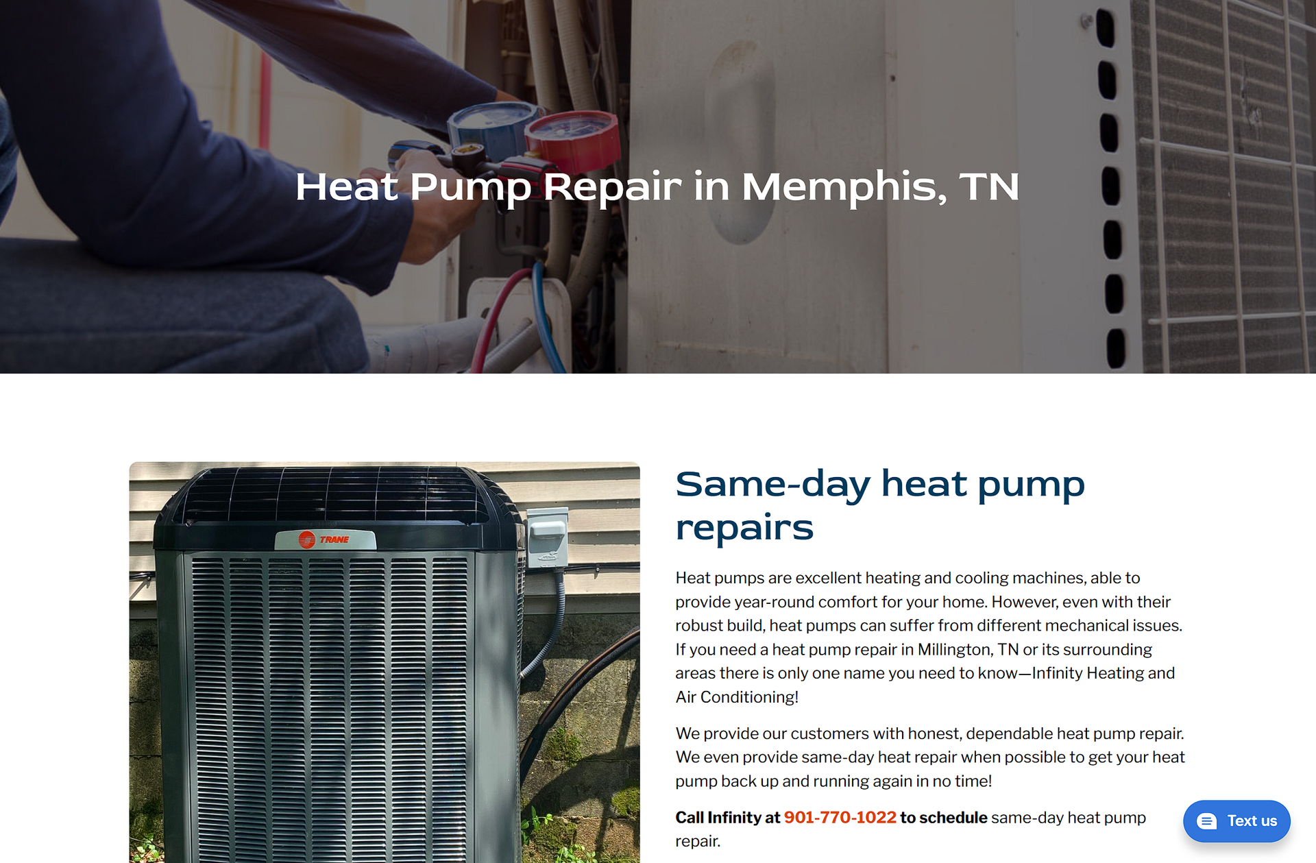 We rebuilt the Infinity Heating & Air website to match their new brand identity and drive stronger search visibility. The new site combines a clean, modern look with a conversion-focused structure built for SEO — helping Infinity rank higher, load faster, and turn visitors into service calls. With clear service pages, trust-driven design, and optimized content, the site positions Infinity as the top HVAC choice for homeowners and businesses across Memphis and beyond.