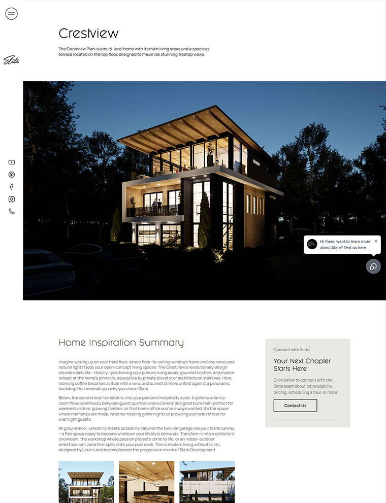 The new Slate Development website transforms an early-stage neighborhood into a fully realized luxury brand. With cohesive branding, modern design, immersive visuals, and SEO-optimized copy, Slate now has a digital presence that inspires confidence, attracts premium buyers, and clearly communicates the lifestyle they’re building in Hattiesburg. From interactive lot grids to high-end storytelling, the site is designed to grow with the community — and to position Slate as the region’s premier modern neighborhood.