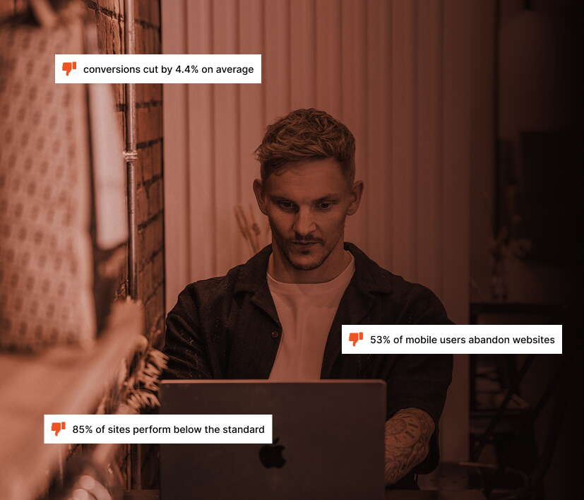 Even worse: each second of delay cuts conversions by 4.4% on average – in the same study, a site loading in 1 second had nearly 5X better conversion rates than one loading in 10 seconds.